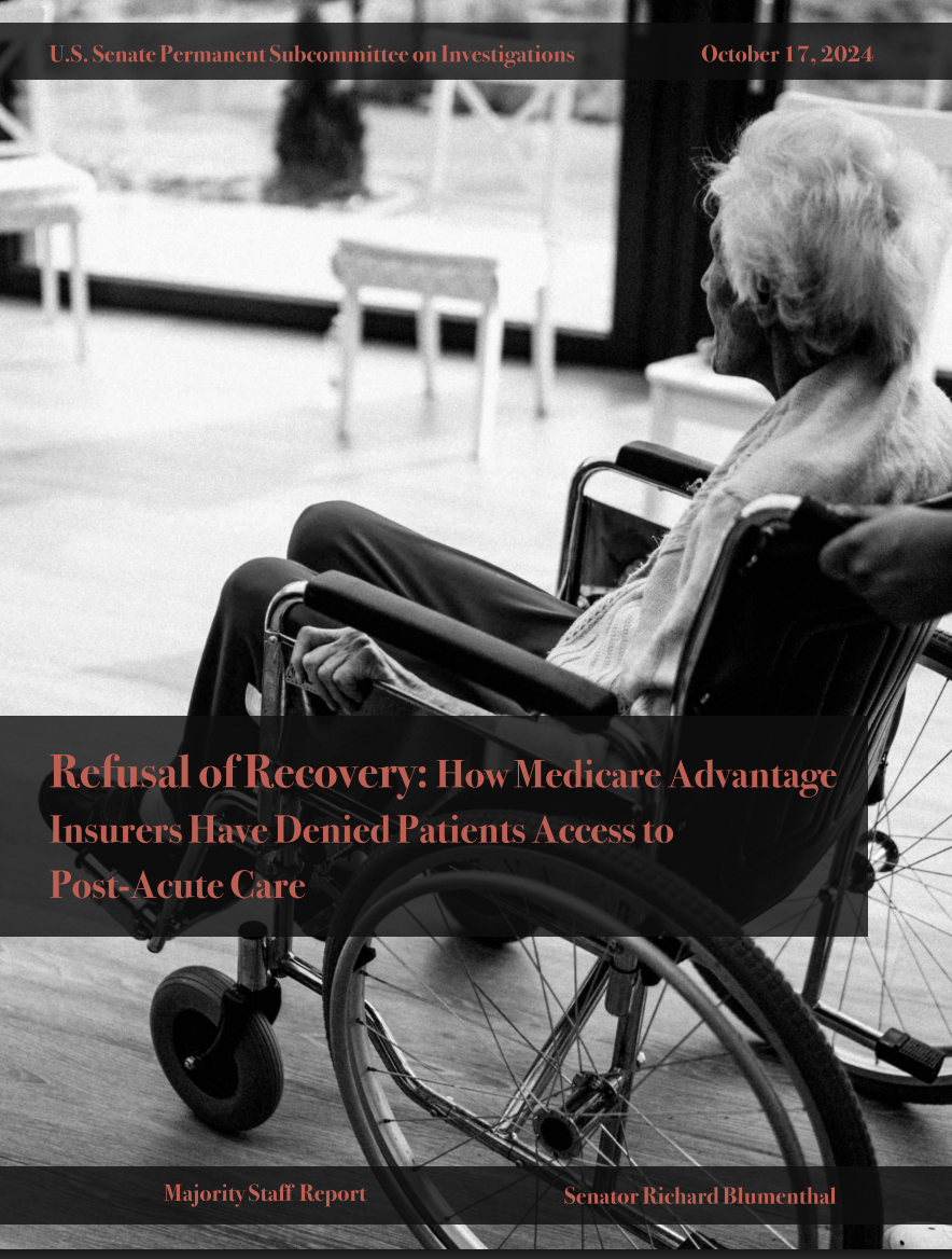 U.S. Senate Permanent Subcommittee on Investigations. (2024, October 17) Refusal of Recovery: How Medicare Advantage Insurers Have Denied Patients Access to Post-Acute Care, Majority staff report. https://www.hsgac.senate.gov/wp-content/uploads/2024.10.17-PSI-Majority-Staff-Report-on-Medicare-Advantage.pdf